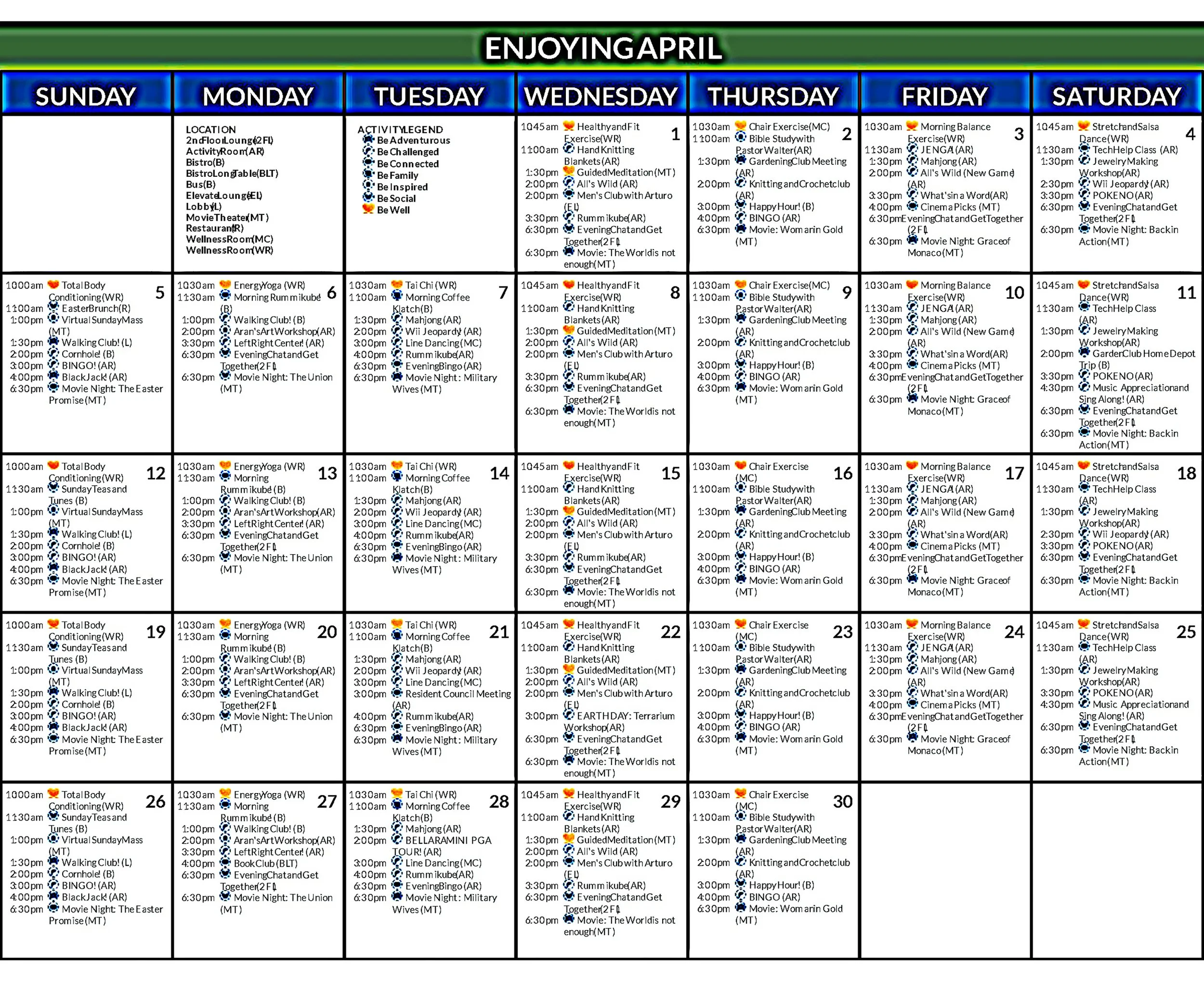 An additional note: the Garden Club is meeting Thursday, April 2 at 1:30 in the courtyard or Activity Room, depending on the weather.